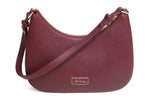 Alice Wheeler Ascot crossbody bag in burgundy vegan leather with gold bee charm and adjustable strap
