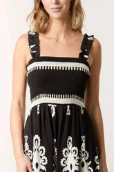 Printed Shirred Bodice Maxi Dress Black